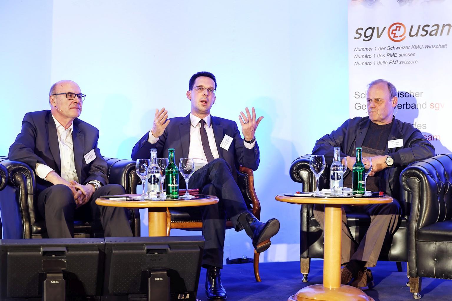 Der Wert der KMU und die Folgen der Regulierung für die KMU standen am Donnerstagmorgen im Zentrum des Interesses. Als direkt Betroffene gaben die Thurgauer SVP-Nationalrätin Diana Gutjahr, der Zürcher KGV-Präsident Werner Scherrer sowie Matthias Baumberger, Direktor des Verbands der Schweizerischen Lack- und Farbenindustrie, Einblicke in ihren Alltag.