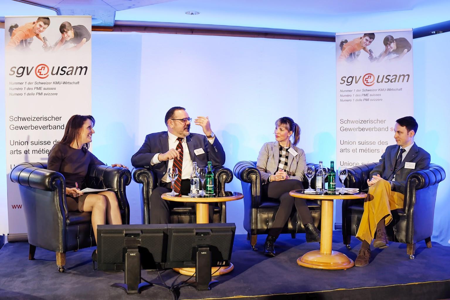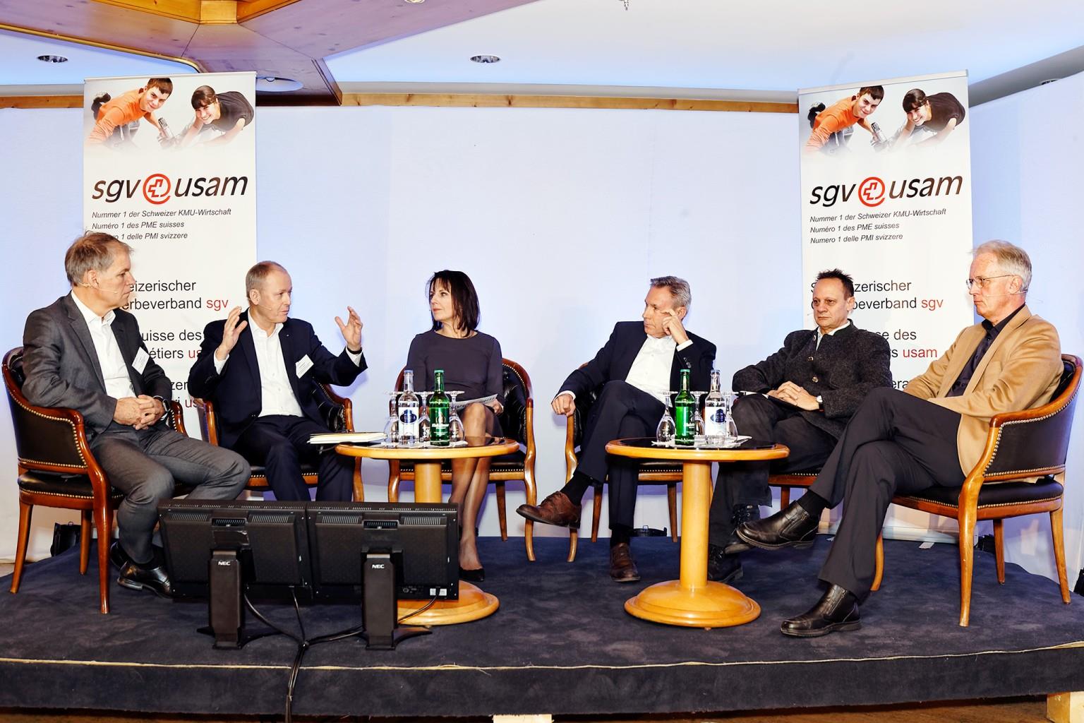 Edith Graf-Litscher (SP) zeigte am Beispiel der Zulassungsbehörde Swissmedic auf, wie alteingesessenen Unternehmen das Leben schwer gemacht wird. Es sei wichtig, so Graf, dass Dachverbände wie der sgv „der Verwaltung auf die Füsse treten“. Und die Thurgauerin gab – aus dem Munde einer SP-Vertreterin so nicht erwartet – zu Protokoll, was auch der sgv stets aufs Neue moniert: „Kaderfunktionäre machen oft gleich selber Politik“…