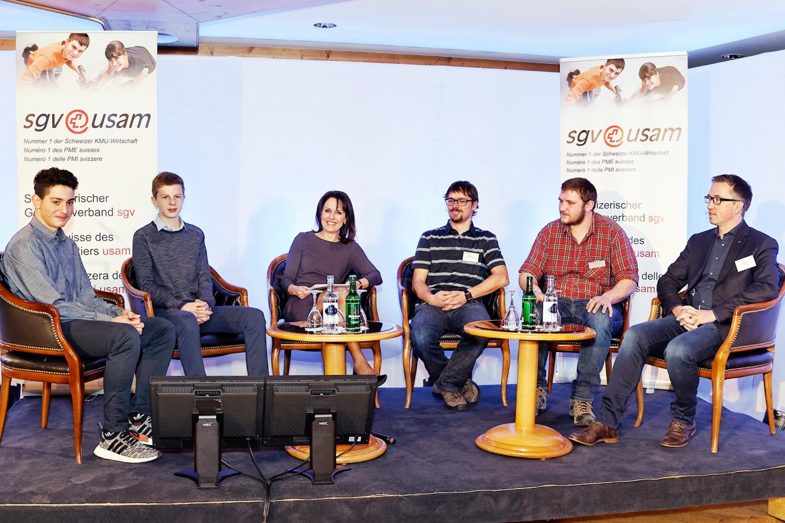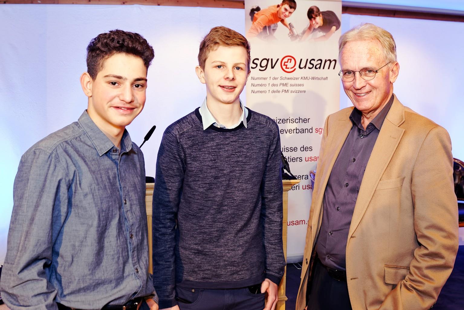 Ein wichtiger Aspekt im Rahmen des Tagungstitels „Wert der KMU“ ist die Berufsbildung. Sie stand am Freitagmorgen der 69. Winterkonferenz im Mittelpunkt. Für einmal kamen die Direktbetroffenen an der Basis – Schüler und Lernende – zu Wort. Alan Cantekin und Dominic Bühler, beides Schüler der 3. Sekundarschule in Mettmenstetten (ZH), erzählten von ihrer Entscheidung nach der Schule den gymnasialen oder den beruflichen Weg einzuschlagen. Für beide war es keine einfache Entscheidung, sind sie doch sehr gute Schüler und haben sie doch die Übergangsprüfung ins Gymnasium absolviert respektive bestanden. Beide haben sie sich für eine Berufslehre als Informatiker entschieden, die sie im Sommer bei Roche respektive der Zürcher Kantonalbank beginnen werden. „Für mich ist die Praxis im Alltag sehr wichtig ebenso wie das Verdienen des ersten eigenen Geldes“, begründete Cantekin seine Entscheidung. Das viele Lernen hätte ihn auch etwas abgeschreckt: „Ich möchte lieber meinen Freundeskreis ausgiebig pflegen. Ich kann später nach der Lehre immer noch via Passerelle an die Uni gehen“, so Cantekin.