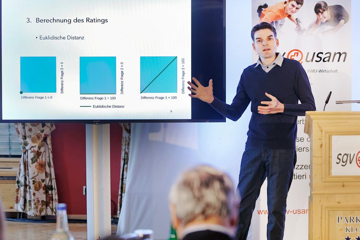 Die FDP im Nationalrat, die SVP im Ständerat an der Spitze: Das KMU-Rating des Schweizerischen Gewerbeverbands sgv wurde an der 70. Gewerblichen Winterkonferenz in Klosters von Polittools-Autor Daniel Schwarz der Öffentlichkeit vorgestellt. «Dass sgv-Direktor und FDP-Nationalrat Hans-Ulrich Bigler im Nationalrat im ersten Rang der KMU-freundlichen Politiker aufgeführt wird, ist einzig seinem Abstimmungsverhalten geschuldet», stellte Schwarz gleich zu Beginn klar. Auf Basis der vom sgv erstellten Sessionsbilanzen zwischen den Wintersessionen 2015 und 2018 seien im Nationalrat 262, im Ständerat 60 KMU-relevante Geschäfte unter die Lupe genommen und gewichtet worden.