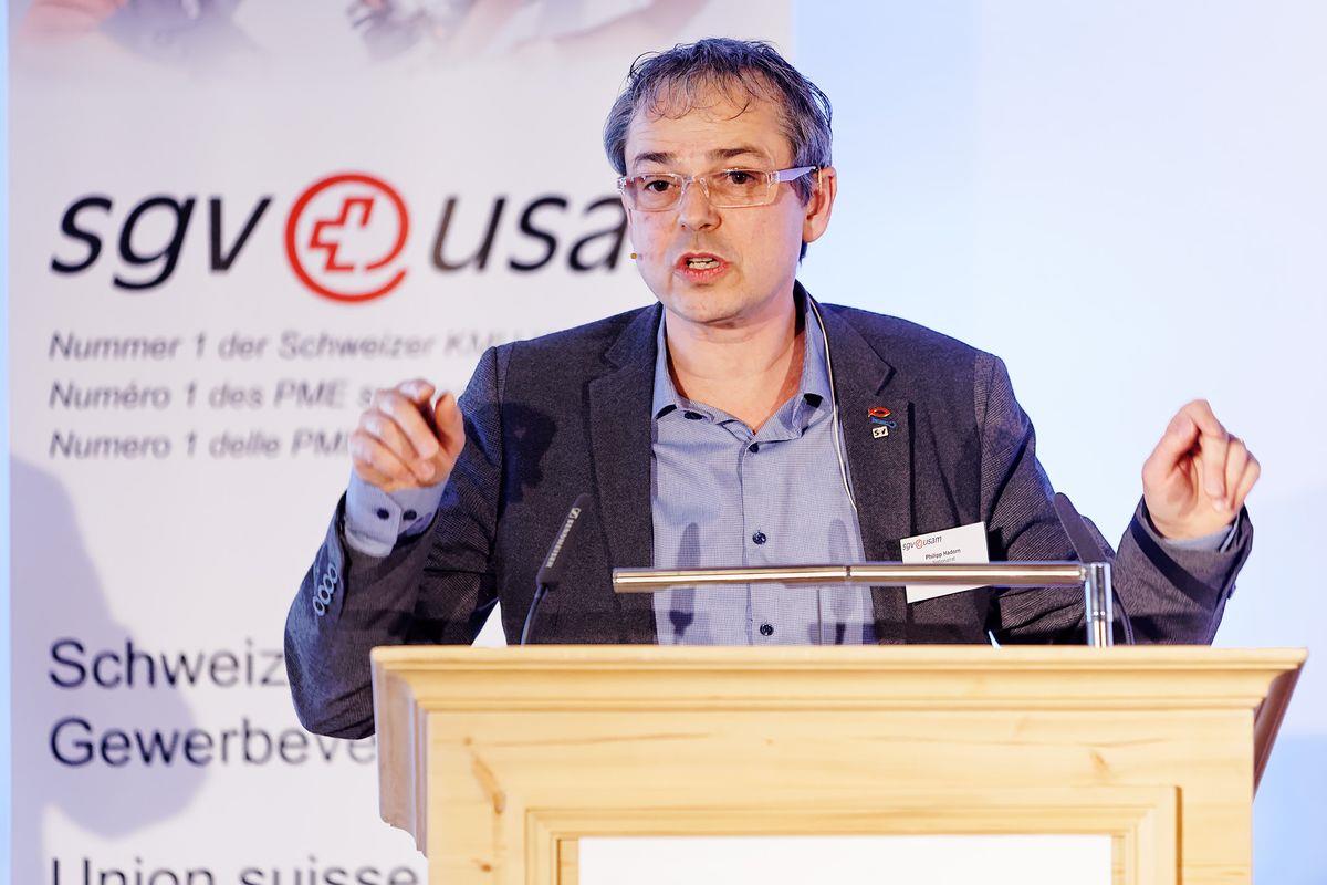 Er sprach sich gegen zusätzliche Regulierungen des Arbeitsmarkts, insbesondere auch gegen einen Ausbau der flankierenden Massnahmen (FlaM) aus und forderte, dass das aus den 1960er Jahren stammende Arbeitsgesetz den heutigen Gegebenheiten angepasst werden müsse. «Nicht mehr, sondern anders, flexibler arbeiten ist die Devise.» Der sgv stelle das Ziel des heutigen Lohnschutzes nicht infrage; Verhandlungen rund um das InstA dürften aber nicht in einer Beschränkung des flexiblen Abeitsmarkts enden.