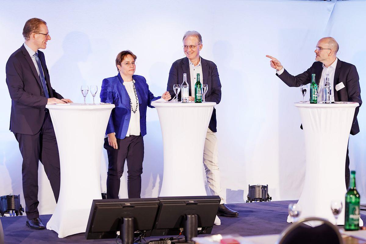NZZ-Redaktor Michael Schönenberger leitete im Anschluss eine lebhafte Diskussion mit folgenden Teilnehmern: Magdalena Martullo-Blocher (NR SVP/GR), Adrian Wüthrich (NR SP/BE und Präsident Travailsuisse) sowie Hans-Ulrich Bigler (NR FDP/ZH und Direktor sgv).