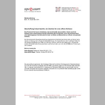 Der Schweizerische Gewerbeverband sgv begrüsst den Entscheid des Parlaments und fordert seine rasche Umsetzung nach erfolgter Schlussabstimmung. Der Aussenhandel ist ein wichtiger Faktor für die Wettbewerbsfähigkeit der KMU und damit der Schweiz. Mit der Abschaffung der Industriezölle werden Wirtschaft sowie Konsumentinnen und Konsumenten um mehr als 500 Millionen Franken pro Jahr entlastet.