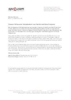Die Vorlage zu den Kinderabzügen wäre ein erster Schritt in Richtung bessere Vereinbarkeit von Familie und Beruf gewesen. Die Entlastung der Familien des Mittelstandes muss an die Hand genommen werden. Der sgv fordert vom Bundesrat rasche Lösungsansätze zur Individualbesteuerung damit die Vereinbarkeit von Familie und Beruf endlich spürbar erhöht wird. Lösungen und keine Verhinderungs- und Neid-Politik sind jetzt gefragt.