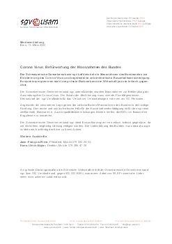 Der Schweizerische Gewerbeverband sgv befürwortet die Massnahmen des Bundesrates zur Eindämmung des Corona Virus und begrüsst eine unbürokratische Kurzarbeitsentschädigung. Konjunkturprogrammen steht der grösste Dachverband der Wirtschaft jedoch kritisch gegenüber.