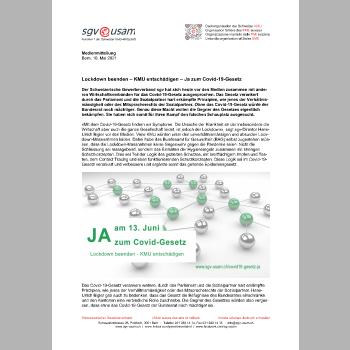 Die Wirtschaft habe Solidarität bewiesen, indem sie Schutzkonzepte und betriebliche Einschränkungen umsetze. Sie dürfe jetzt nicht im Regen stehen gelassen werden. Deshalb sei am 13. Juni unbedingt ein Ja an der Urne nötig.