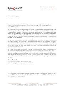 Der grösste Dachverband der Schweizer Wirtschaft erwartet, dass insbesondere während einer Krise das Prinzip der Verhältnismässigkeit hochgehalten wird. Der sgv erwartet auch, dass etwaige im Zusammenhang mit der Eindämmung der Pandemie vorgesehene Massnahmen vorgängig mit den Sozialpartnern abgesprochen werden. Das bestimmt das Covid19-Gesetz ausdrücklich. Es ist stossend, dass der letzte Meinungsaustausch mit den Sozialpartnern in dieser Task Force das letzte Mal vor zwei Monaten stattfand. Das gleicht einer eigentlichen Gesprächsverweigerung durch Bundesrat und BAG.