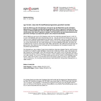 Mit der Ablehnung des neuen CO2 Gesetzes durch das Volk bleibt das geltende Gesetz in Kraft. Es ist zwar nicht befristet, doch seine Massnahmen sind es. Das gilt auch für den Mechanismus zur Teilnahme an den Klimaeffizienzprogramme der Wirtschaft. Unternehmen, die sich ein Ziel für die Reduktion des CO2-Austosses geben und es erreichen, werden von der CO2-Abgabe befreit und partizipieren an ihrer Rückverteilung. Damit wird Klimaschutz mit Wirtschaftlichkeit verbunden. Der Erfolg dieser Massnahmen ist enorm: Bisher haben über 4000 Unternehmen über 2400 Zielvereinbarungen abgeschlossen. Das entspricht etwa 50 Prozent des CO2-Ausstosses von Schweizer Industrie- und Dienstleistungsunternehmen.
