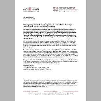 Vor diesem Hintergrund lehnt der sgv die geplante Änderung des Covid-19-Gesetzes ab. In der Vorlage fehlt erstens ein verbindliches Normalisierungsziel. Zweitens ist die Vorlage voller Widersprüche. So ist unverständlich wieso zwar wirtschaftliche Hilfen weitergeführt werden sollen, dies jedoch nur für Sport und Kultur und nicht für alle anderen Betroffenen. Drittens kündigt die Botschaft an, die Wirtschaft mehr belasten zu wollen. Dies etwa mit einer Quarantäneregelung, die keinen Bezug zu irgendeiner Wirklichkeit hat, oder mit inkonsistenten Vorgaben im Arbeitsrecht.