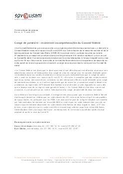 «Le Conseil fédéral est d’avis que le développement d’une offre d’accueil extrafamilial et parascolaire adaptée aux besoins et l’instauration d’un congé de prise en charge pour les parents d’enfants gravement atteints dans leur santé présentent un meilleur rapport coûts-bénéfices que le congé de paternité.», peut-on lire dans son rapport du 23 mai 2019. «En outre, il considère que des solutions individuelles au niveau des conventions collectives ou des entreprises offrent plus de flexibilité qu’un congé de paternité inscrit dans la loi. Il estime également que de nouvelles propositions visant à étendre les prestations du régime des APG doivent être traitées à la lumière des projets législatifs en cours, afin que le financement de ce régime reste garanti à l’avenir.» Le Conseil fédéral s’est donc clairement prononcé, il y a tout juste un an, contre l’introduction d’un congé de paternité de deux semaines.
