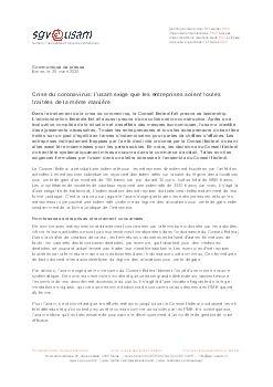 Dans le traitement de la crise du coronavirus, le Conseil fédéral fait preuve de leadership. L’administration fédérale fait elle aussi preuve d’une collaboration constructive. Après une évaluation complète de la situation et des effets des mesures économiques, l’usam a identifié des ajustements nécessaires. Toutes les entrepreneures et tous les entrepreneurs doivent être traités sur un pied d’égalité en termes d’indemnisation pour pertes de chiffres d’affaires. Les entreprises indirectement frappées par l’arrêt d’activité ordonné par le Conseil fédéral doivent elles aussi être indemnisées pour les pertes subies. En outre, les décisions du Conseil fédéral doivent être systématiquement mises en œuvre dans le commerce de détail. Telles sont les exigences formulées par l’usam dans une lettre adressée à l’ensemble du Conseil fédéral.