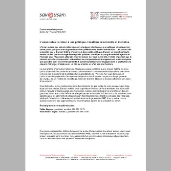 Communiqué de presse «L’usam salue le retour à une politique climatique raisonnable et incitative»