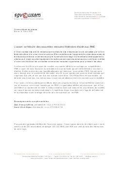 L'Union suisse des arts et métiers usam se félicite des mesures en cours adoptées par la Confédération face à la crise du coronavirus. Elle considère que l'augmentation des ressources du fonds de liquidité est une mesure propre à permettre de réagir à d'éventuels développements ultérieurs. L'usam soutient également le renforcement des mécanismes de contrôle en matière d'octroi de crédits et les considère comme des mesures opportunes pour prévenir les abus.