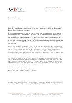 La plus grande organisation faîtière de l’économie suisse attend que le principe de proportionnalité soit respecté, surtout en période de crise. L’usam attend aussi que les mesures prévues pour endiguer la pandémie fassent au préalable l’objet d’une concertation avec les partenaires sociaux. Cela figure expressément dans la loi COVID-19. Il est choquant que le dernier échange de vues avec les partenaires sociaux au sein de la task force ait eu lieu pour la dernière fois voilà deux mois. Le Conseil fédéral et l’OFSP semblent véritablement refuser la discussion.