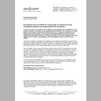 Communiqué de presse «Prolongation de la loi COVID-19: l’usam exige un scénario de sortie contraignant plutôt qu’une simple gestion de la pandémie»