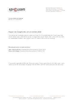 Compte tenu de la situation actuelle relative au Covid-19, le Comité directeur de l’Union suisse des arts et métiers usam a décidé de reporter le Congrès des arts et métiers 2020, prévu le 29 avril 2020. La manifestation est désormais programmée le 27 octobre 2020 au Forum Fribourg.